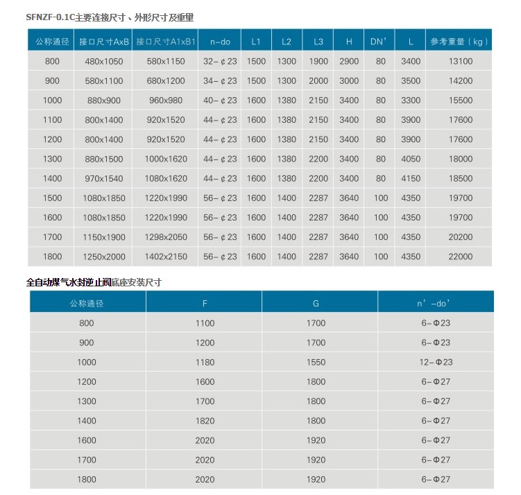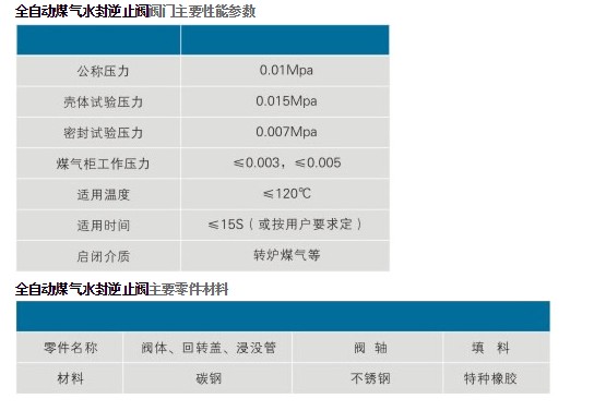 SFNZF氣動(dòng)煤氣水封逆止閥主要性能參數(shù)