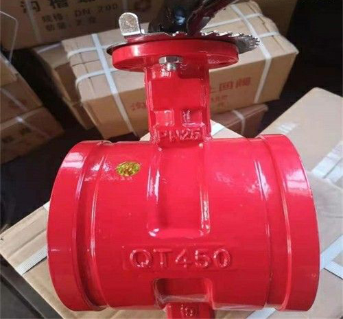 蝸輪溝槽蝶閥,溝槽式(卡箍)連接的閥門是引進美國與德國同類先進產品而設計制造的一系列新型連接閥門廣泛應用于輸送流體管道的給排水,消防、空調、燃氣、石油、化工、水處理、市政、造船等管道工程作為控制流體作用。