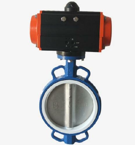氣動對夾球墨鑄鐵蝶閥,選用單作用或雙作用氣動執(zhí)行器。小口徑閥用齒輪齒條活塞氣動,大口徑閥,用撥叉式活塞氣動。根據(jù)有無彈簧復(fù)位,可選擇:雙作用式(無彈簧)和單作用式(有彈簧)兩種。