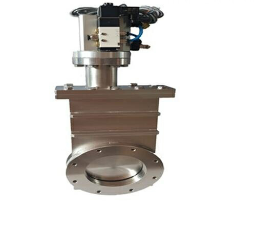 是用壓縮空氣為動力,通過電磁換向閥改變氣路方向,推動氣缸活塞,通過傳動桿推(拉)動連桿機構,驅動閥板沿軸向運動,實現閥板開啟或關閉,從而達到在超真空系統中接通或切斷氣流的目的。在結構設計上合理,在外觀上美觀,并具有動作平穩,體積小,流量大,使用可靠,密封性能好和壽命長等優點,能廣泛應用于超高真空設備中。適用的工作介質為潔凈的空氣及非腐蝕性氣體。