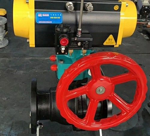 Q641F16C-氣動(dòng)帶手動(dòng)球閥用于截?cái)嗷蚪油ü苈分械慕橘|(zhì),選用不同的材質(zhì),氣動(dòng)球閥可分別適用于水、蒸汽、油品、硝酸、醋酸、氧化性介質(zhì)、尿素等多種介質(zhì)。氣動(dòng)法蘭球閥可廣泛應(yīng)用于造紙、石化、化工、冶金、電力、環(huán)保、石油、輕工等工業(yè)部門的自動(dòng)化控制系統(tǒng)中。