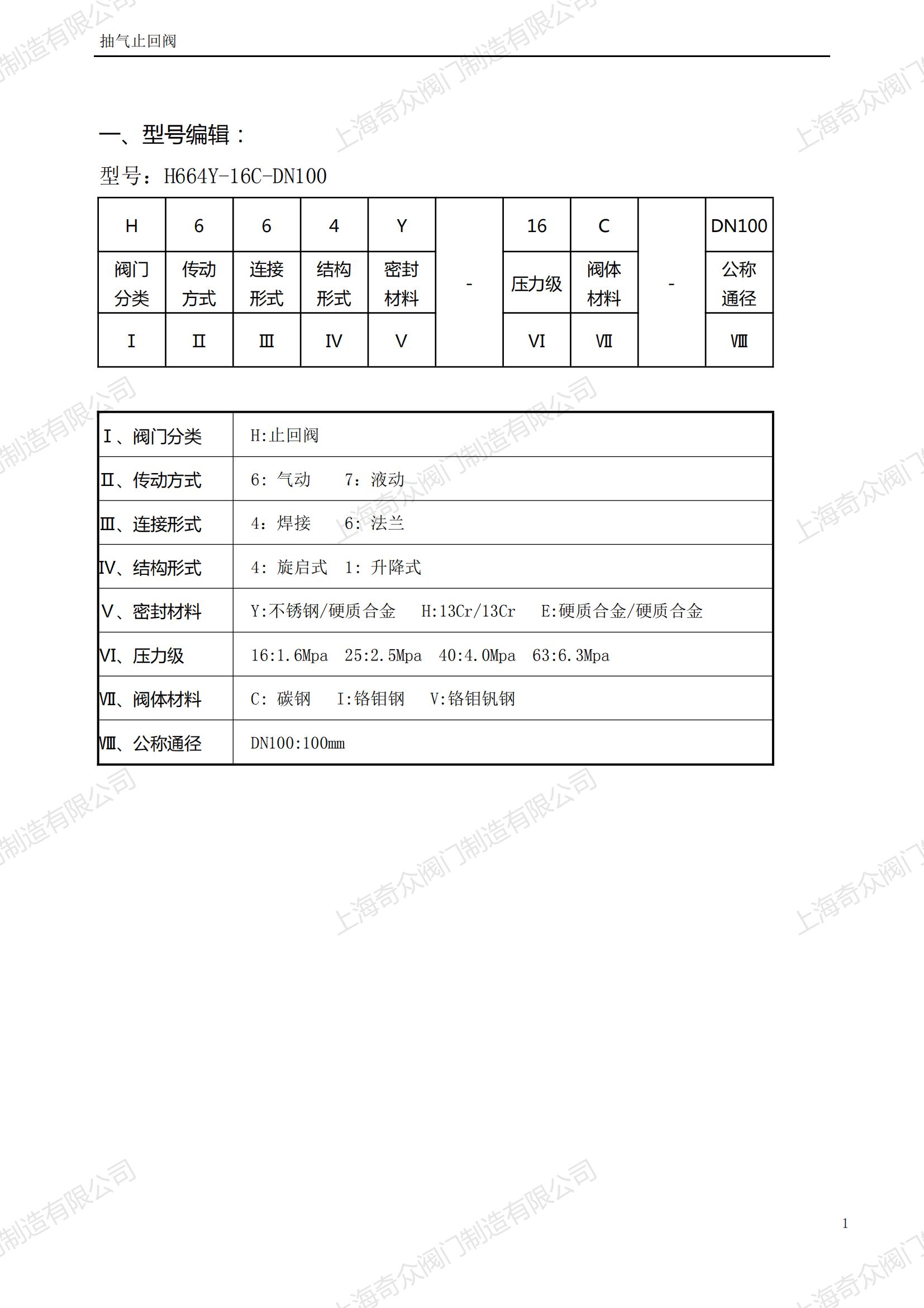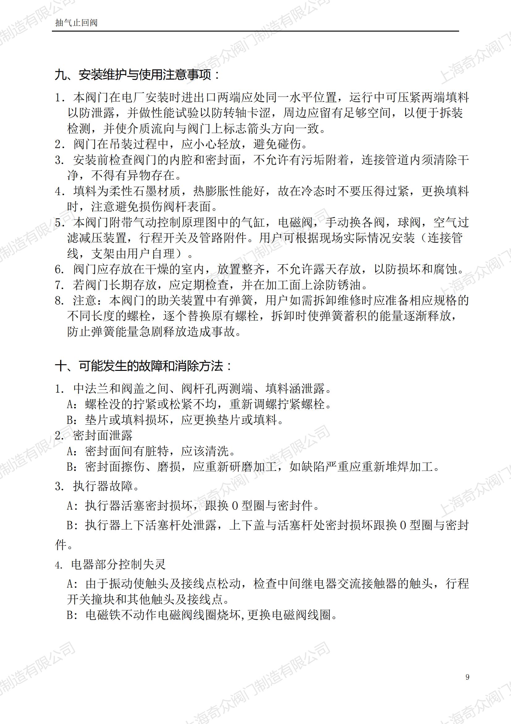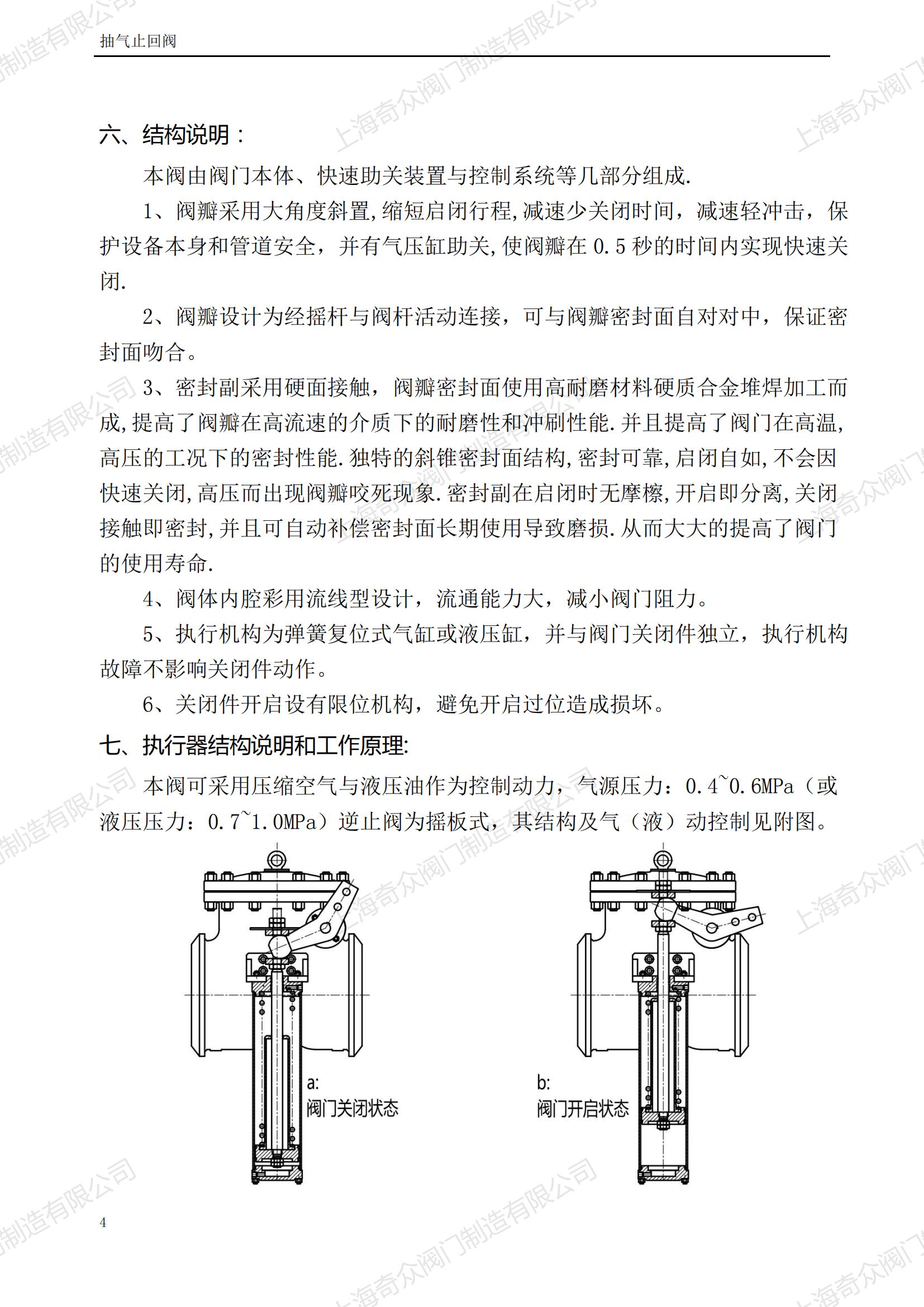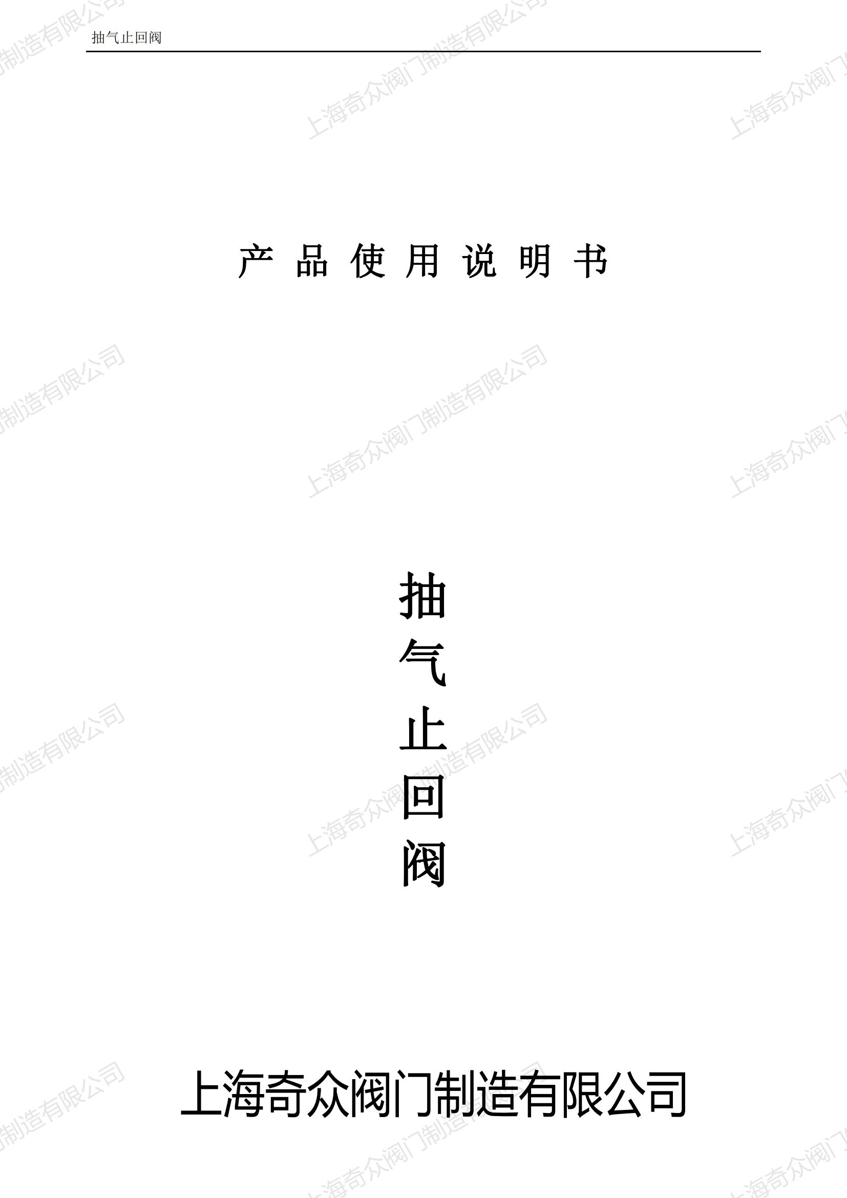 氣動快速關閉抽氣止回閥產品使用說明書
